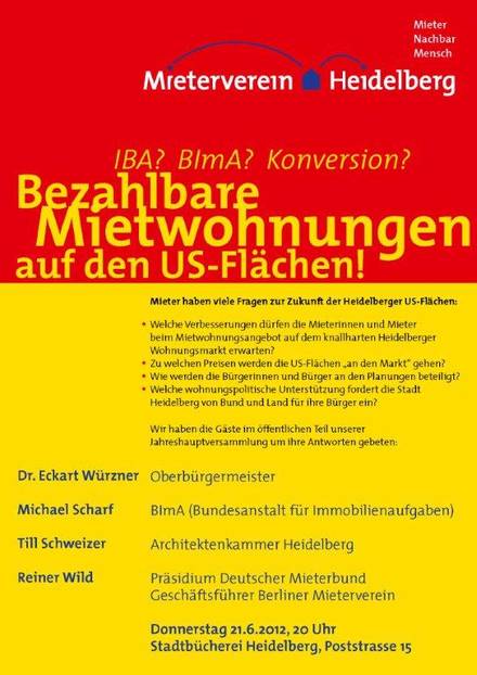 Am 21.6.2012 fand eine interessante Veranstaltung zum Thema Konversion/Wohnen statt. Über folgende Links können Sie nochmals „nachhören“, wie das Gespräch der über 130 Anwesendenmit dem Heidelberger Oberbürgermeister, einem BImA-Vertreter und zwei weiteren Experten verlief.
