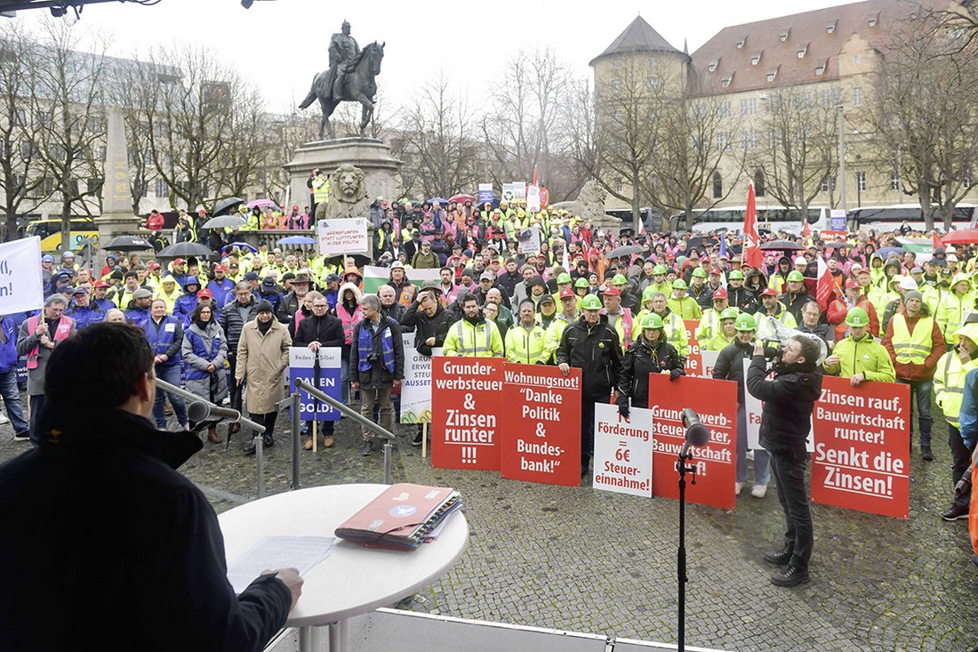 Zu Sternfahrt und Kundgebung hatten Bauwirtschaft Baden-Württemberg und Industriegewerkschaft Bauen-Agrar-Umwelt aufgerufen. Rund 1.200 Personen fanden sich auf dem Stuttgarter Karlsplatz ein. Etwa 300 Fahrzeuge fuhren durch die Landeshauptstadt. Kundgebung und Sternfahrt sind nach Angaben der Polizei bis auf einen zwischenzeitlichen Rückstau von der Stadtmitte bis nach Bad Cannstatt störungsfrei verlaufen.