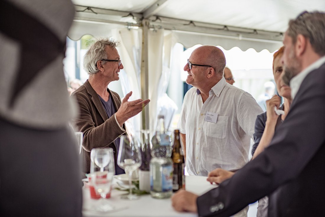 Von drei positiven Entwicklungen hatte Markus Müller beim Sommerlichen Empfang zu berichten sowie von zwei Baustellen - die eine zäh, die andere riesig. Zuerst die guten Nachrichten: "Noch vor einem Jahr waren wir beim Thema IBA StadtRegion Stuttgart auf dem Stand euphorischer Ratlosigkeit." Angesichts der beeindruckenden Fußstapfen, welche die Macher der Weißenhofsiedlung hinterlassen haben, sei man sich der großen Herausforderungen bewusst. Mit Andreas Hofer aus Zürich habe sich aber zwischenzeitlich ein brillianter Kopf für die Intendanz gefunden und die Gesellschafter, zu denen auch die Architektenkammer gehört, arbeiteten in einer Art Konsortium "in enorm partnerschaftlicher Atmosphäre."