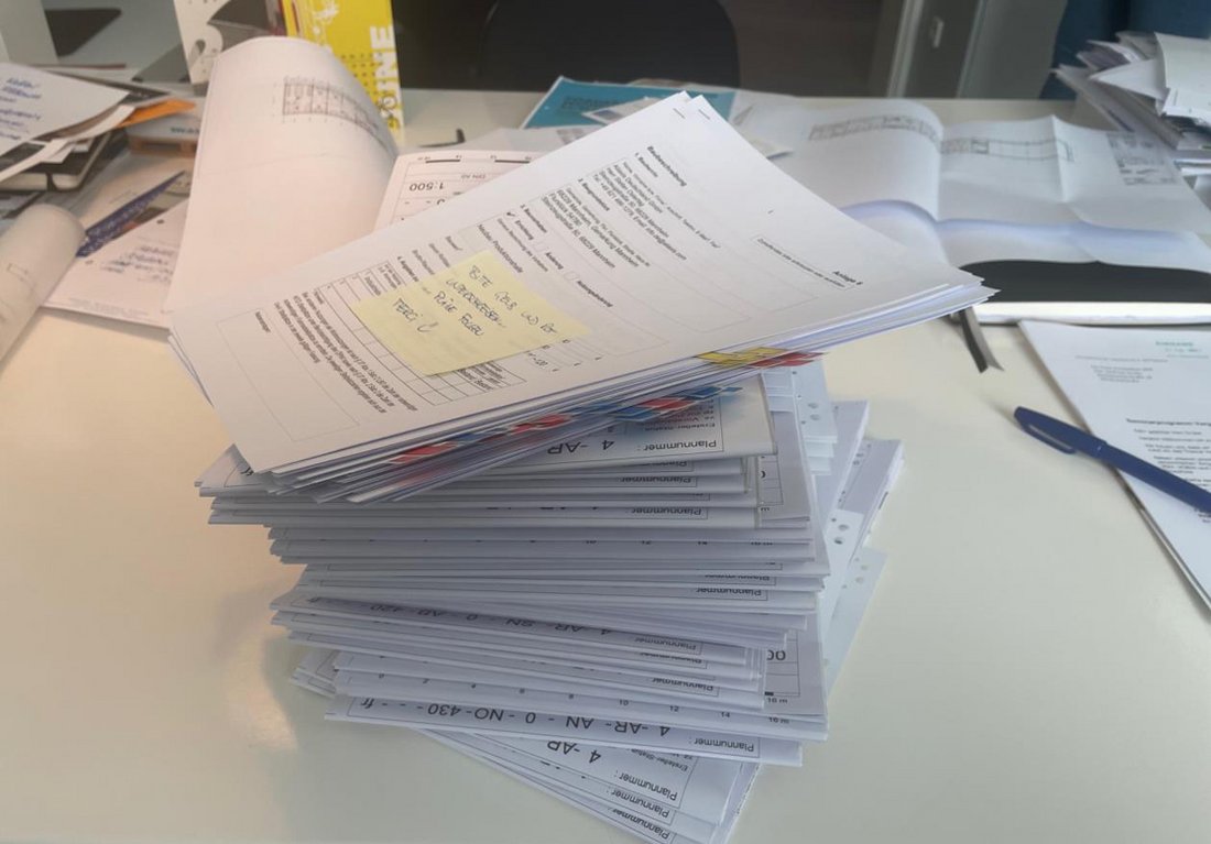 "Keine einzige Verbesserung ist bei dem Thema erkennbar", schrieb uns Andreas Grube, Vorsitzender des Kammerbezirks Karlsruhe. Die zahlreichen Rückmeldungen weiterer Mitglieder lesen sich ebenfalls wie Antworten auf die Sommer-Umfrage. So schreibt Faruk Murat: „Aktuell wird bei den meisten Bauämtern zweigleisig verfahren, was die Sache noch komplizierter macht, also digital per E-Mail einreichen und zusätzlich die Unterlagen gedruckt als Mappe mehrfach.“ Wenig hoffnungsfroh mit Blick auf nachhaltige Verfahren stimmt auch sein Hinweis: „Eine Bauverständige hat mir mitgeteilt, dass ein Bauamt sogar einen Plotter angeschafft hat, um die digital eingereichten Pläne selbst zu plotten.“ Ganz ähnlich schreibt dazu Fritz Heintel: „Statt Vereinfachung zusätzlich PDF für die Präsentation im Gemeinderat oder Bauausschuss, ansonsten drei- oder mehrfache Ausfertigung auf Papier“. Die Pointe: „Im Übrigen wurde mir heute von der Umweltbehörde mitgeteilt, dass Anträge auf wasserrechtliche Genehmigungen nunmehr digital und einmal in gedruckter Form eingereicht werden sollen."