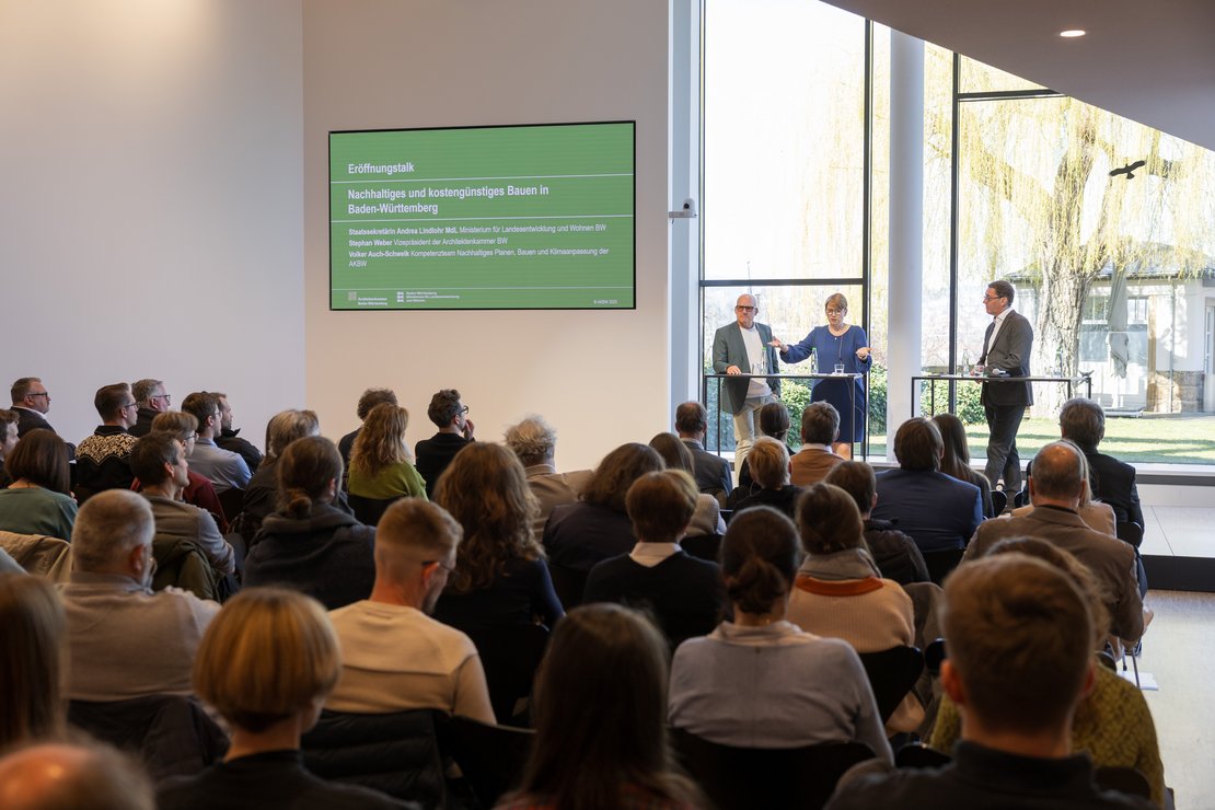 Mit Expertinnen und Experten aus Architektenschaft, Ministerien, Verbände und Wissenschaft diskutierte die AKBW über die Weiterentwicklung des Gebäudeenergiegesetzes (GEG). Neben klaren Vorschriften im Neubau, brauche es im Bestand eigenständige Instrumente, die die Sanierung anreizen.