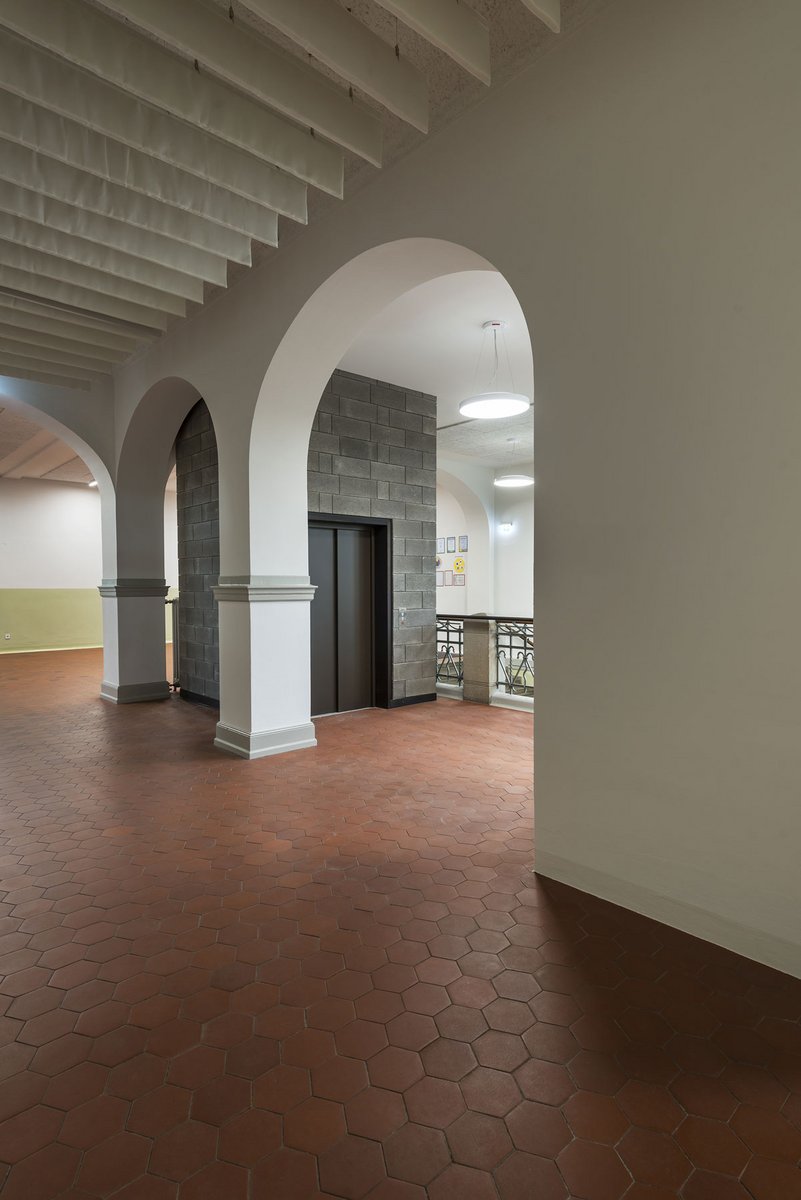 Bei der Sieben-Keltern-Schule in Metzingen von [shoch3] architektenpartnerschaft mbb lobte das Preisgericht, wie "harmonisch und zurückhaltend" sich die Details der Barrierefreiheit - darunter ein Aufzug, rollstuhlgerechte Toilettenanlagen und taktile Handlaufmarkierungen - in die alte Bausubstanz einfügen. Das Ergebnis mache den Aufwand wett, der für den Abstimmungsprozess zwischen den Baubeteiligten, der Inklusionsbeauftragten der Stadt Metzingen (Bauherrin) und der Konservatorin der Denkmalpflege sicherlich intensiv war.