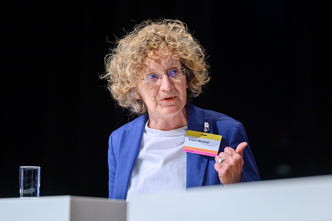 Die große Überschrift des Architekturkongresses „Neue Arbeitswelten“ nahm durch die Keynote von Antje von Dewitz, Geschäftsführerin von „VAUDE Sport“, Gestalt einer machbaren Vision an. Sie schilderte die Transformation ihres Unternehmens zu einem mit „kleinstmöglichem ökologischen Fußabdruck“ – in Produktion, Verwaltung, Öffnung zu Standortregionen, Strom, Dach-PV, alternative Mobilität. Nachhaltiges Handeln habe einen „unglaublichen Innovationsprozess angestoßen“, so Antje von Dewitz. In den Finanzkennzahlen werde das jedoch nicht sichtbar. „Es ist wahnsinnig schwer als Unternehmen Verantwortung zu übernehmen: Es kostet mehr und ist schwieriger als es nicht zu tun. Das ist schräg“, verwies sie mittelbar auf die analoge Situation im Gebäudesektor, wo es ebenfalls nicht belohnt wird, wenn man verantwortungsvoll baut. Motivation seien Glaubwürdigkeit, Verantwortung und Resilienz. „Wir verfolgen ökologische Ziele, schaffen aber auch Lebensqualität.“ Ihr Credo: „Die Transformation lässt sich nur stemmen, wenn der eigene Glauben da ist.“