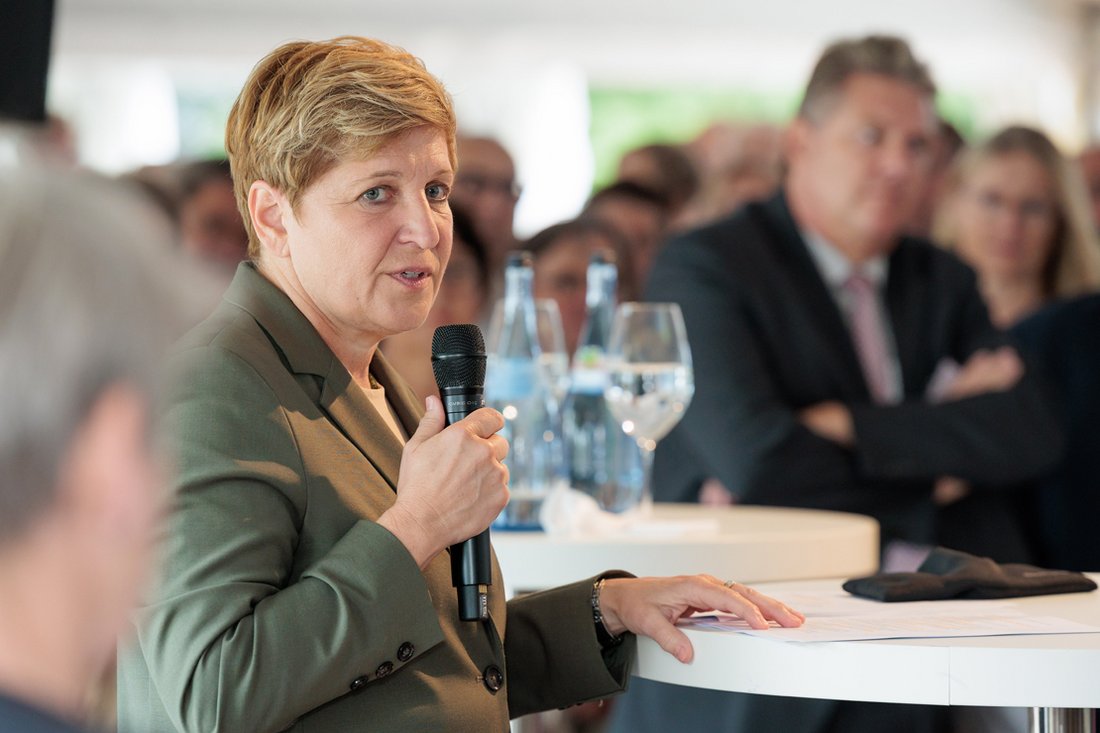 Stuttgart. Der Wohnungsbau im Zeichen von Inflation, Zins- und Kostensteigerung war die große Überschrift über dem diesjährigen Sommerlichen Empfang der Architektenkammer Baden-Württemberg (AKBW). Mehr als 400 Gäste aus Politik, Wirtschaft und Gesellschaft kamen am 3. Juli im Panoramagarten des Hauses der Architektinnen und Architekten zusammen. Gastrednerin war Nicole Razavi MdL. „Wir müssen alles dafür tun, damit der Motor im Wohnungsbau nicht ausgeht“, sagte die Ministerin für Landesentwicklung und Wohnen. „Die Herausforderungen im Wohnungsbau sind dringlich, zahlreich und groß. Aber ich weiß auch: Genauso groß sind die Kreativität und die Bereitschaft im Land, diese Aufgabe anzugehen. Um den Mangel an Wohnraum zu bekämpfen, brauchen wir die Expertise der Architektinnen und Architekten.“