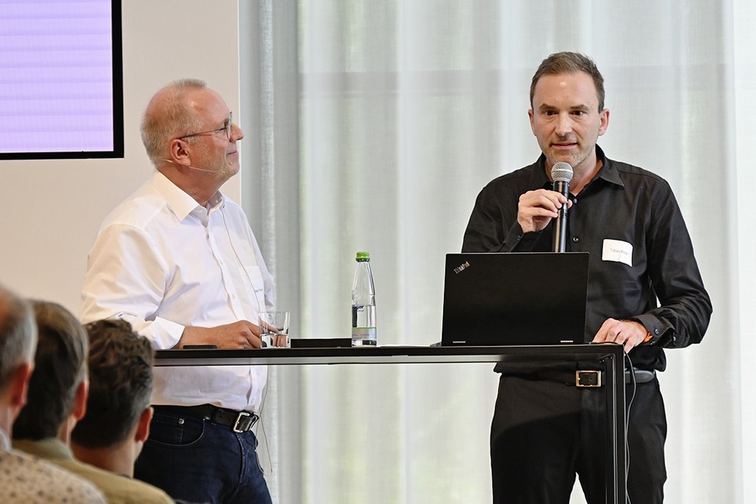 Förderung war auch in Herrenberg ein „Umsetzungsbooster“, berichtete der ehemalige Baudezernent und Vorsitzender Tobis Meigel, der auch Vorsitzender der Kammergruppe Böblingen ist. Als eine von fünf Modellstädten für saubere Lauft erhielt Herrenberg eine 95-prozentige Förderquote durch die Bundesregierung. Unter dem Titel „Barrieren überwinden“ präsentierte Landschaftsarchitekt Stefan Fromm das mutmachende Projekt, bei dem die B14 zu einem grünen Boulevard umgestaltet wurde. Sein Büro hatte 2018 gemeinsam mit Wick + Partner Architekten · Stadtplaner den freiraumplanerischen Realisierungswettbewerb mit städtebaulichem Ideenteil gewonnen. Denn, so Meigel, in Herrenberg habe man erkannt: „Wir haben kein Verkehrsproblem, sondern ein städtebauliches Problem.“ Statt einer Verkehrsachse gibt es nun neuen öffentlichen Raum mit einem Überweg ohne Ampel, der Alt- und Innenstadt verbindet. Möglich allein durch eine intelligente Regelung, die den Verkehr im Bereich des Boulevards auf 20 bis 40 Km/h regelt. „Ein tolles Projekt, das die interdisziplinäre Zusammenarbeit zeigt, auch mit der Verkehrsplanung zusammen“, resümierte Stefan Fromm.