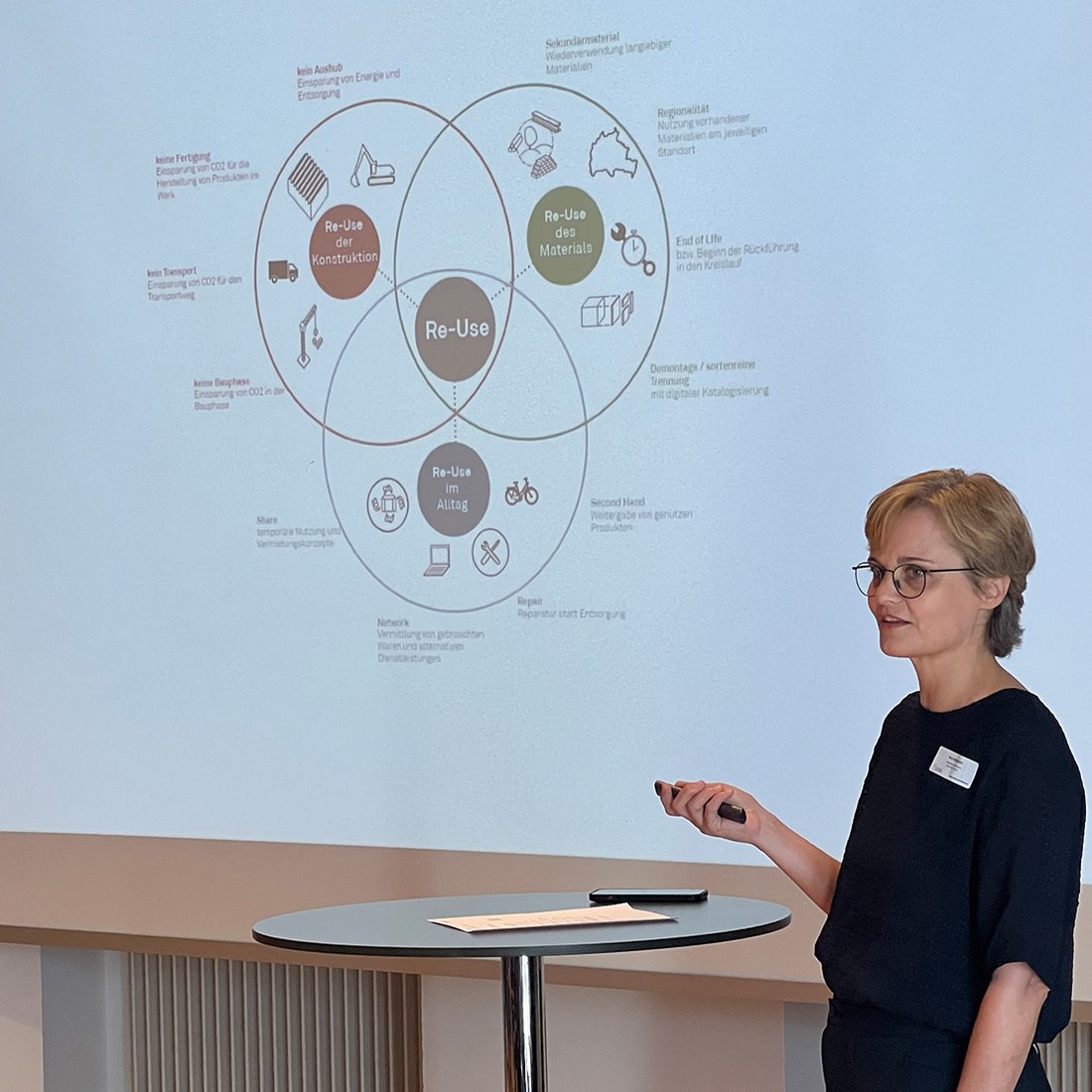 Um das Thema möglichst umfassend zu beleuchten, lud das Kompetenzteam Referentinnen und Referenten mit verschiedenen Blickwinkeln ein. Aus Perspektive der Kommunen als Bauherrschaft berichtete der Baubürgermeister der Landeshauptstadt Peter Pätzold, die Sicht des Berufsstandes nahm Vera Hartmann von sauerbruch hutton ein. Tobias Riffel, Geschäftsführer der Firma Riffel Bau & Fertigteile – ein Hersteller von Modulen – präsentierte aus dem Blickwinkel der mittelständischen Bauwirtschaft. Komplettiert wurde das Feld von IBA-Intendant Andreas Hofer und dem Präsidenten der Architektenkammer Bremen, Oliver Platz.