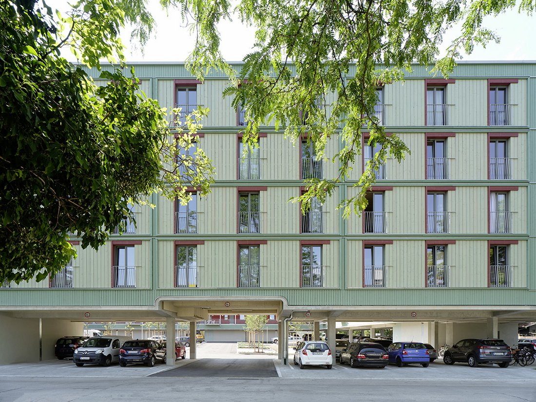 Architekt Sebastian Streck, Geschäftsführer bei Florian Nagler Architekten, präsentierte die Dante-Projekte in München. Dante 1, 2015 entwickelt, entstand in Kooperation mit B&O Bau und der GFBW Bau und Wohngesellschaft als Antwort auf die Flüchtlingskrise. Zugelassen im vereinfachten Genehmigungsverfahren, entstand es in der außergewöhnlich kurzen Planungs- und Bauzeit von nur einem Jahr, flankiert freilich durch unterstützendes Interesse des Münchner Oberbürgermeisters. Das innovative Konzept nutzt die auf einem schmalen Riegel vorhandenen Parkplätze: Ein auf Stützen platziertes Gebäude in Holzriegelbauweise stellt bezahlbaren Wohnraum in Ein- und Zweizimmerwohnungen bereit. 2019 folgte Dante 2 mit 144 Apartments, größeren Stützenabständen, angepassten Wohnungsgrößen sowie Erkern für mehr Barrierefreiheit und zusätzlichen Wohnraum. Lieferschwierigkeiten während der Corona-Pandemie führten hier zu Preissteigerungen. Dennoch zeichnen sich beide Projekte aufgrund der serienmäßigen Vorfertigung durch verkürzte Bauzeiten und eine bessere Kostenkontrolle aus. Streck: „Wir haben das gemacht, was Generalübernehmer nicht können.“