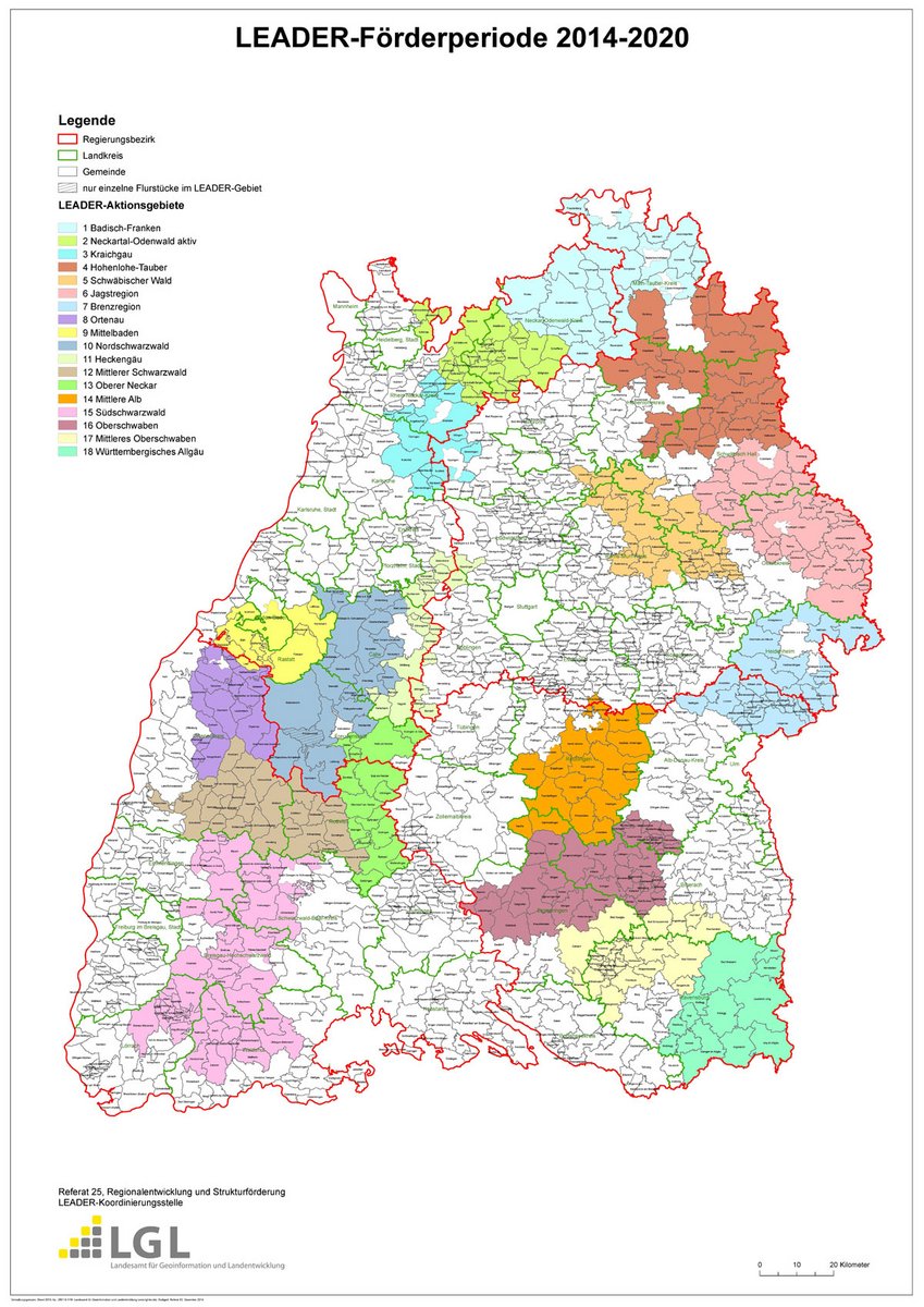In anderen Bundesländern ist die flächendeckende Auswahl der Region ohne Wettbewerb gewährleistet, wobei auch hier alle sieben Jahre ein Cut erfolgt. In diesen sieben Jahren arbeitet die Region gemeinsam an der Umsetzung eines vorher festgelegten Entwicklungskonzeptes und wählt Förderprojekte aus. Insgesamt verfügten die Regionen in Baden-Württemberg über 84 Mio. Euro für die nun zu Ende gehende Förderperiode. Die überwiegende Anzahl der Förderprojekte ist investiver Natur. Bauprojekte, egal ob kommunal oder privat, gewerblich oder gemeinnützig, binden einen Großteil der Fördermittel. Eine Förderuntergrenze ist nicht gegeben, so kommen auch kleine Projekte zum Zug.